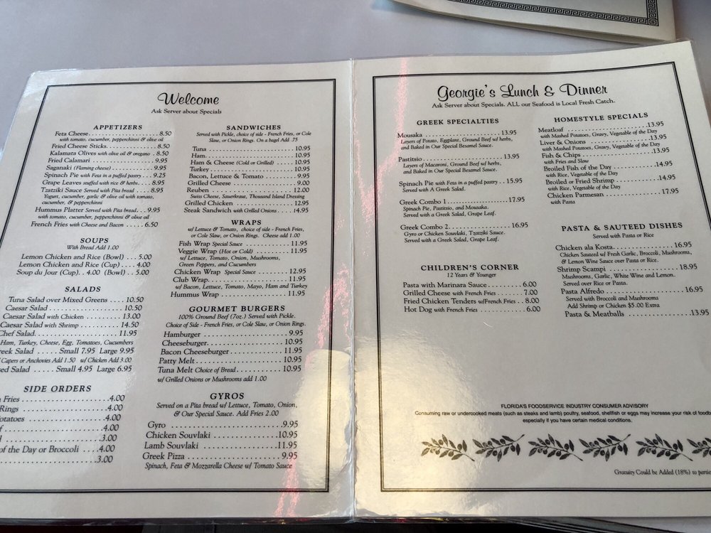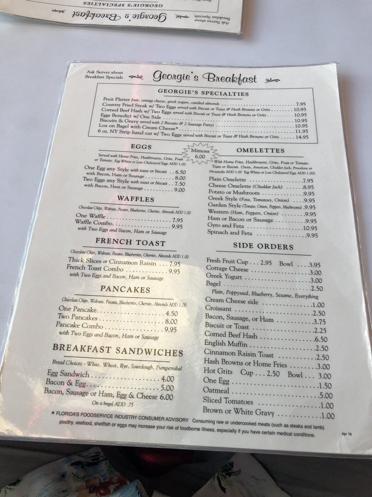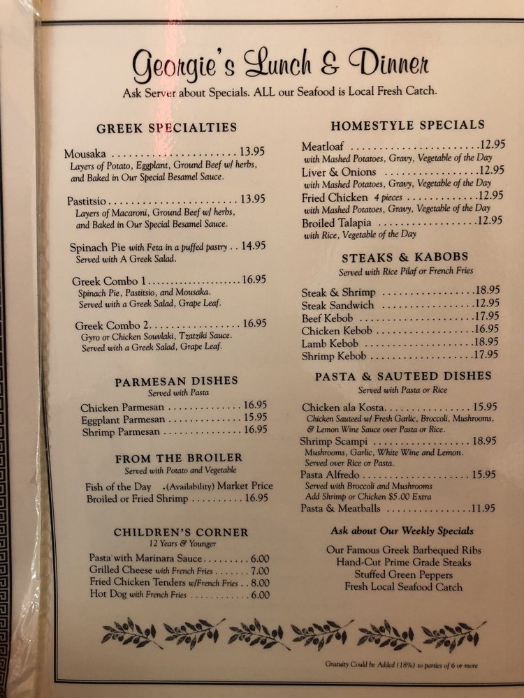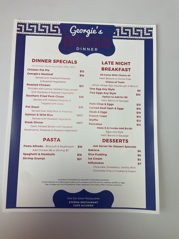 Located in Saint Augustine, FL, Georgie's Diner offers a unique blend of Greek and classic diner cuisine. With a variety of options for takeout, delivery, and reservations, this cozy spot is perfect for breakfast, brunch, lunch, or dinner. Customers rave about the massive gyro, perfectly crispy hash browns, and delicious spinach and feta omelette. The friendly staff, quick service, and old-time diner vibe make for a memorable dining experience. The Greek salad with chicken and chicken souvlaki with Tzatziki are also popular choices. Although some reviews mention minor flaws like overcooked onion rings or bland Greek dressing, overall, Georgie's Diner receives high praise for its generous portions and tasty dishes. Don't miss out on this true diner gem in the heart of Saint Augustine.